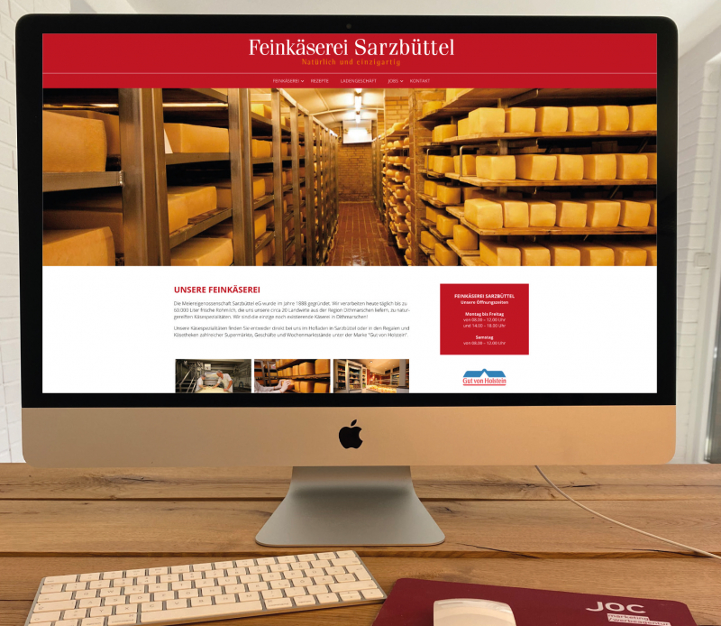 Seit mehreren Jahren dürfen wir für die Feinkäserei in Sarzbüttel arbeiten, Dithmarschens einzige noch existierende Käserei! Tag für Tag entstehen dort in echter Handarbeit leckere Käsespezialitäten. Jüngstes Ergebnis unserer Zusammenarbeit: die neue Website.