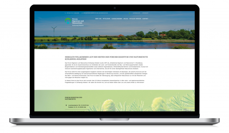 Das Forum Eigentum und Naturschutz aus Kiel hat uns mit der Modernisierung des Logos und dem Relaunch der Website beauftragt. Eine informative Seite des Interessenverbandes, selbstredend mit CMS und mobiloptimiert. Hier mal reinklicken
