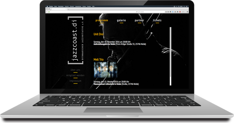 jazzcoast.di bereichert die Dithmarscher Kulturlandschaft ungemein! Mit der neuen Website, deren Programmierung wir übernommen haben, wird dies nun noch besser nach außen getragen.