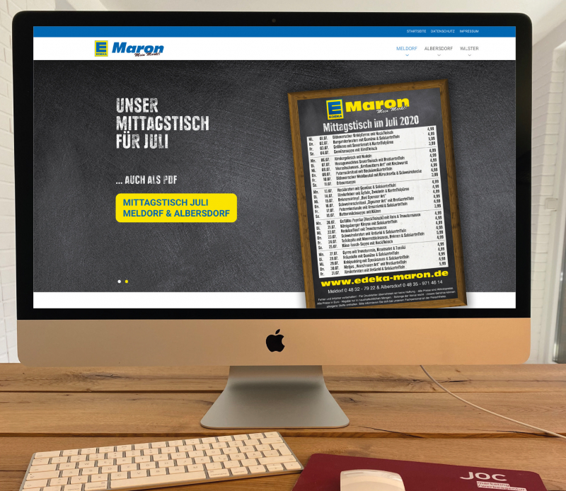 In Meldorf, Albersdorf und Wilster ist Edeka Maron stets für seine Kunden da - mit Freundlichkeit, Qualität, Regionalität und Frische. Service ist für die Teams selbstverständlich, und so wird der Einkauf bei Maron zu einem entspannten Erlebnis in gut sortierten Märkten. Alle wichtigen Infos - einschließlich der aktuellen Wochen- sowie Mittagstischangebote - vermittelt die neue Website von uns.