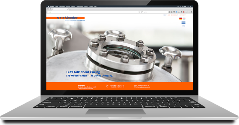 Die Nische in der Nische besetzt das Unternehmen SRS-Meeder. Im Neubau im Gewerbepark Westküste konzentriert SRS-Meeder sich auf Problemlösungen, z.B. für Industrielackierungen, Bodenbeschichtungen, Laminieren, Kleben, Verpressen und Vergussmasse. Unser Job: Produktbroschüre und zweisprachige Website mit Mobiloptimierung.